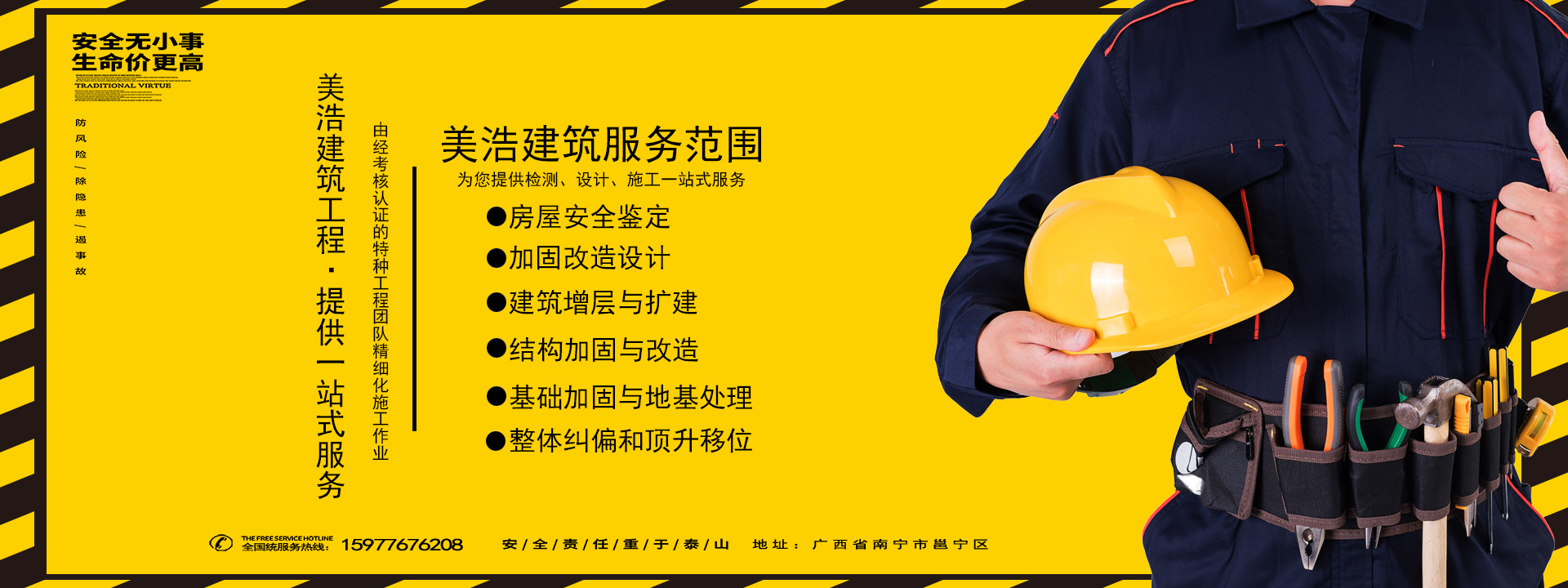大多數老板在需要做房屋加固的時候,心中都會產生這樣的疑慮:靠譜的加固公司去哪找?市面上的加固公司實在太多了,想要短時間內找到一些靠譜的公司確實有些困難。那么廣西房屋加固公司具備什么條件呢?這邊跟您推薦一下廣西美浩建筑工程有限公司,該公司實力雄厚,并且有所保證。下面就跟大家講講。一、選擇客戶好評多的公···